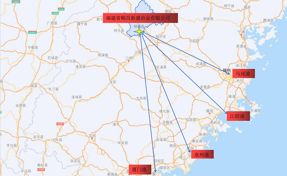Fujian Shunchang Xinsheng Metallurgy Co., Ltd. is located in the industrial park of Xintun village, Shunchang County, where the transportation is convenient, and the expressway is about 3.8 kilometers away from the plant. The company is only about 300 kilometers away from major ports in Fujian Province, which provides a very convenient transportation channel for high-speed transportation and realizes the integration of ships and vehicles.